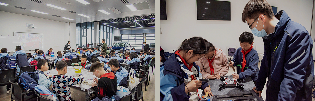 本次活动,,,后宅小学3-6年级学生走进艺术设计学院、、汽车与智能交通学院、、智能工程学院和大学生活动中心参与了艺术设计与创作、、、汽车制造与维修、、现代工业智能制造等工业研学活动。。。。
