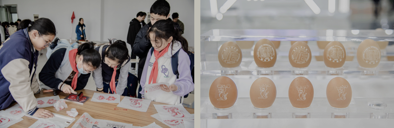 同学们在智工学院体验了精雕细琢之蛋雕、、、艺术拓印、、、、解密鲁班锁、、、、人机协同、、、小小交通灯等项目,,,,了解机电技术在实际生活中的应用过程。。