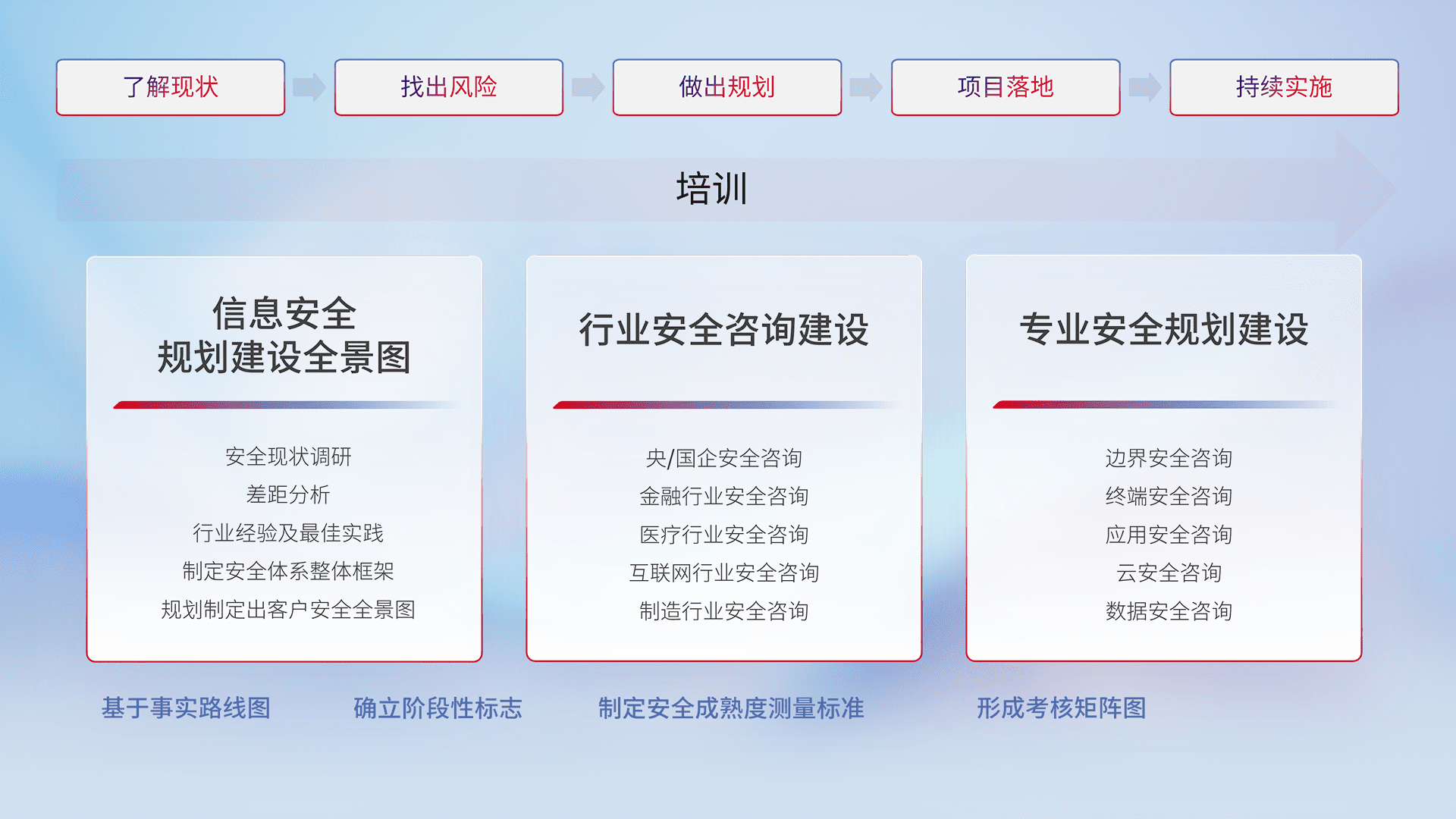 梳理客户信息安全现状调研、、差距分析结果,,结合行业先进经验及最佳实践,,,,制订客户的信息安全管控体系总结架构,,,最终形成一个完整的客户信息安全规划与建设的全景图。。